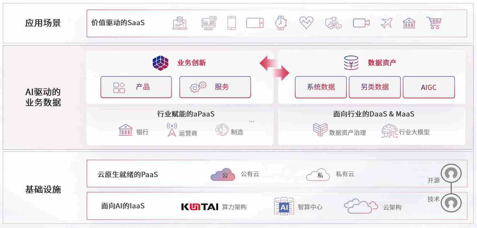 数字时代,,,围绕企业数字化转型的关键要素,,4436X12威尼斯数码开创性的提出数云融合战略和技术体系框架,,,着力在云原生、、、、数字原生、、、、AI原生和信创产业上架构产品和服务能力,,,为处在不同数字化转型阶段的快消零售、、汽车、、金融、、、、医疗、、、政企、、、、教育、、、运营商等行业客户提供泛在的敏捷IT能力和融合的数据驱动能力,,,构建跨界融合创新的数字业务场景和新业务模式,,助力企业级客户建立面向未来的核心能力和竞争优势,,,,全面推动社会的数字化、、、、智能化转型升级。。。